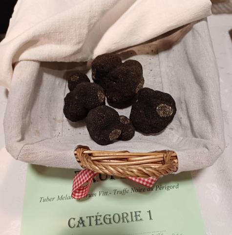 Sur fond de chants de Noël, le parfum des truffes sous la Halle se mêlait à celui du vin chaud sur le marché, et la pluie n'a découragé personne, ni apporteurs car 29 étaient présents, ni visiteurs venus nombreux.